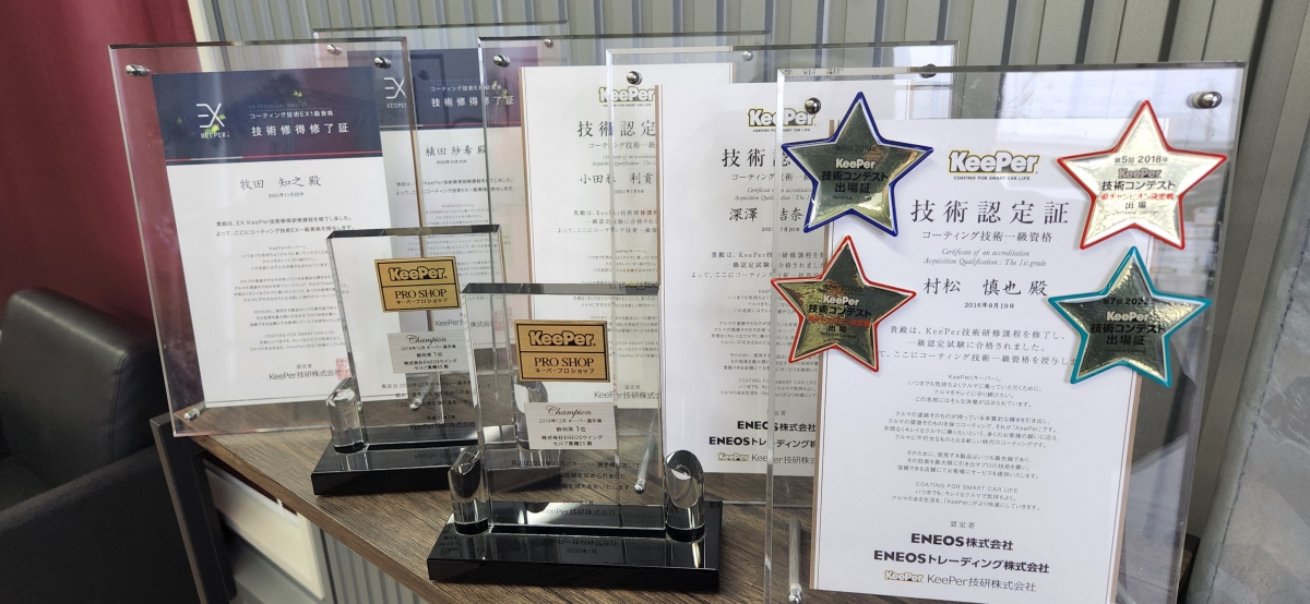 当店ではキーパー1級資格者が8名在籍しておりますので、コーティングでお困りの事があればいつでもスタッフにお声掛けください。