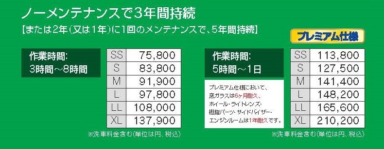 施工後のお手入れは、通常の水洗い洗車でもシャンプー洗車でも結構です。