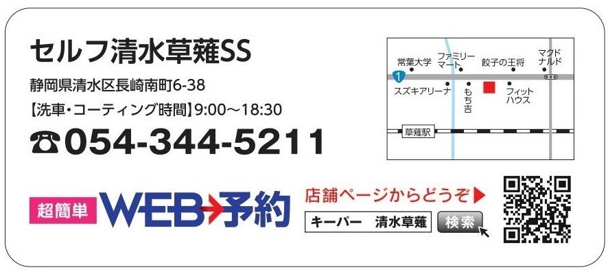 コーティング、手洗い洗車のご予約、お問い合わせは ☎ 054-344-5211