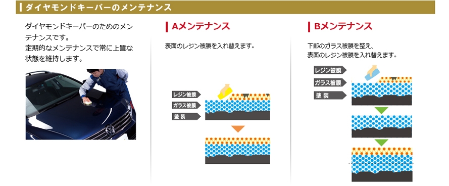 キーパー独自のガラスコーティングで更に補修を行うメンテナンス方法も御座います。