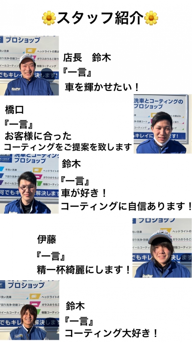 KeePer1級資格者4名の 洗車・カーコーティングのプロが多数在籍しております。