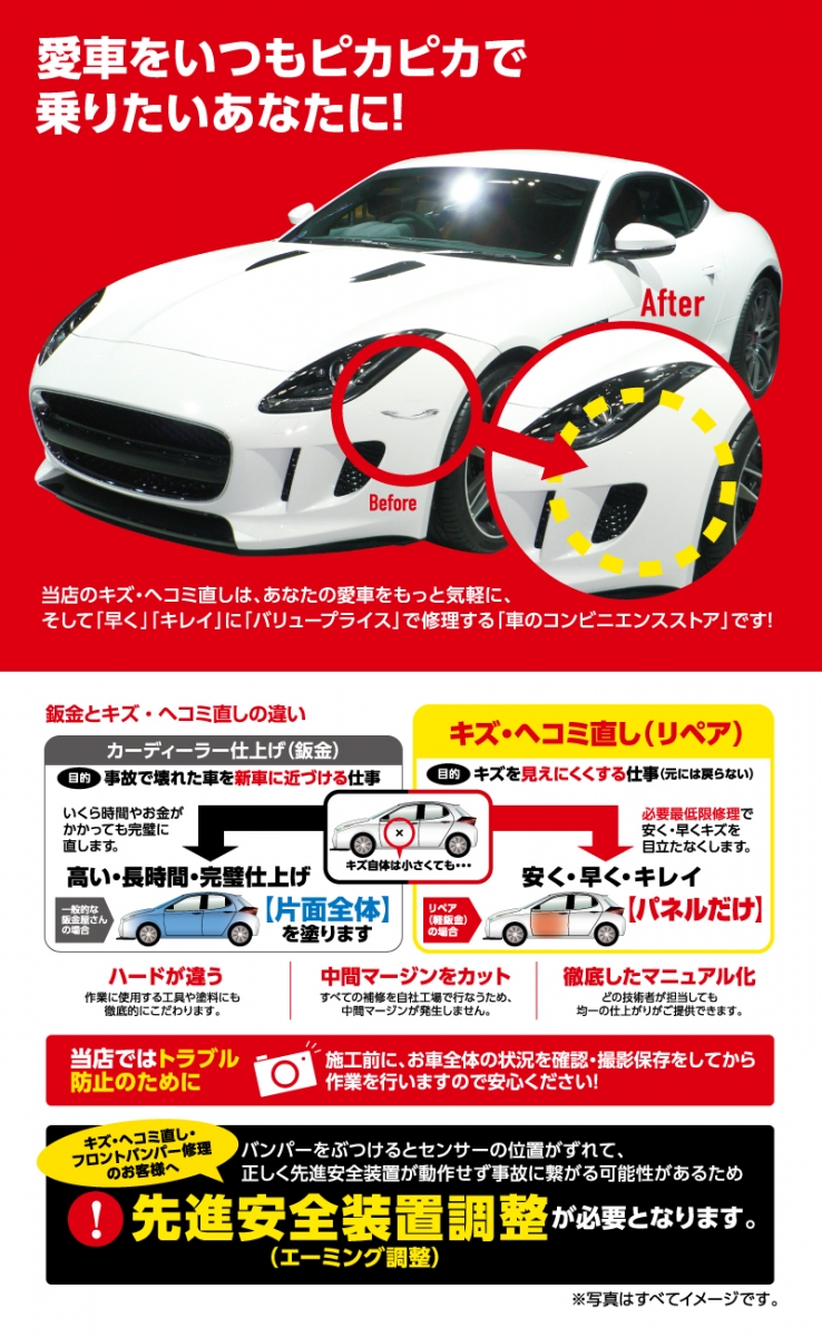 地域密着型のお店で、お客様の安全、安心、キレイを提供するために、日々技術を磨きお車の整備を行っております。