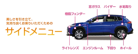 車のボディー(塗装部分)をコーティングするだけでなく、ホイール(EXキーパープレミアムはWホイールコーティング)・ガラス・樹脂フェンダー・レンズ類・ボンネットの裏側など、隅々まで全てコーティングします!!
