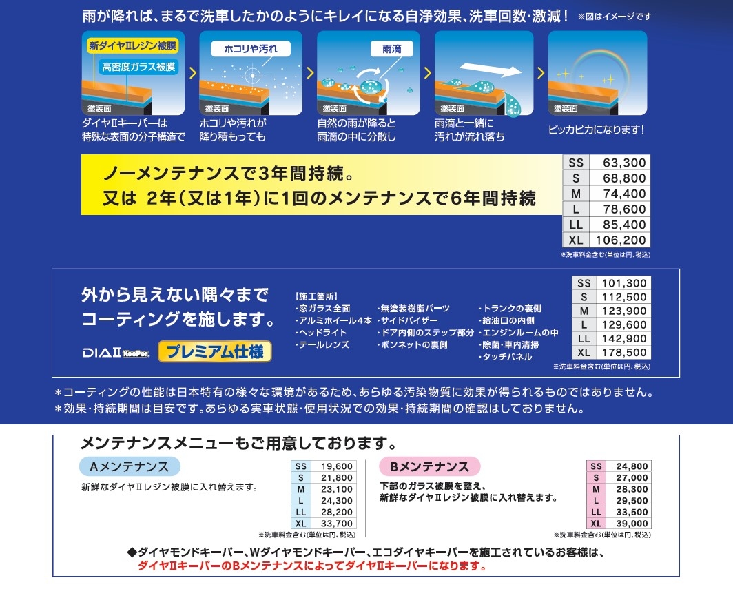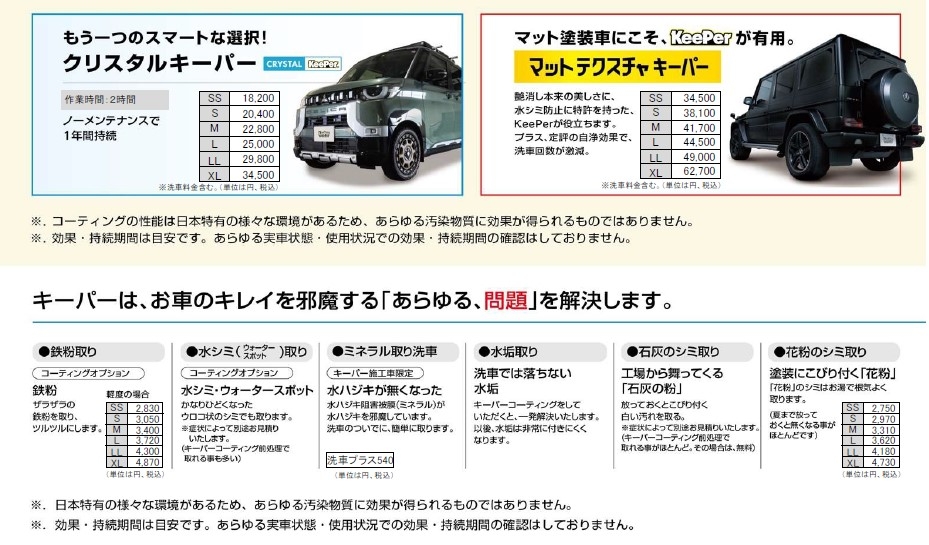 ※キーパー施工者の場合、以下の金額で洗車を行うことが可能です。