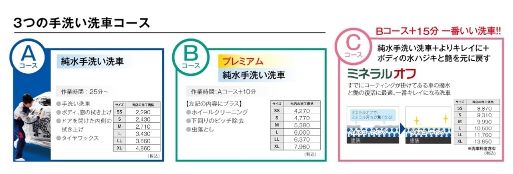 当店では、お客様のカーライフに合わせてコーティングメニュー、アラカルト商品をお勧めさせて頂いております。