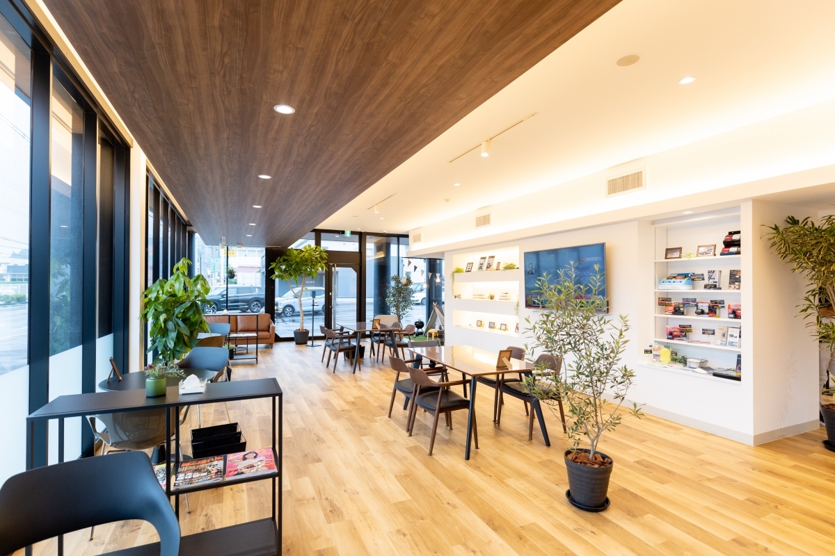お待ちいただく間は、ゆっくりお寛ぎいただけようにカフェの様な待合室をご用意。お誘いあわせの上ご来店下さい。