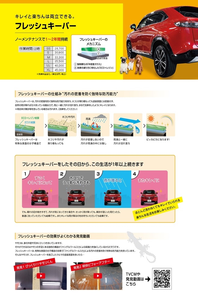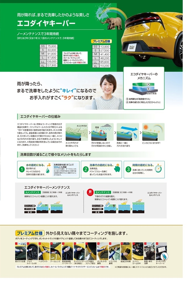 カーコーティング、ウィンドウコーティング、ホイールコーティング