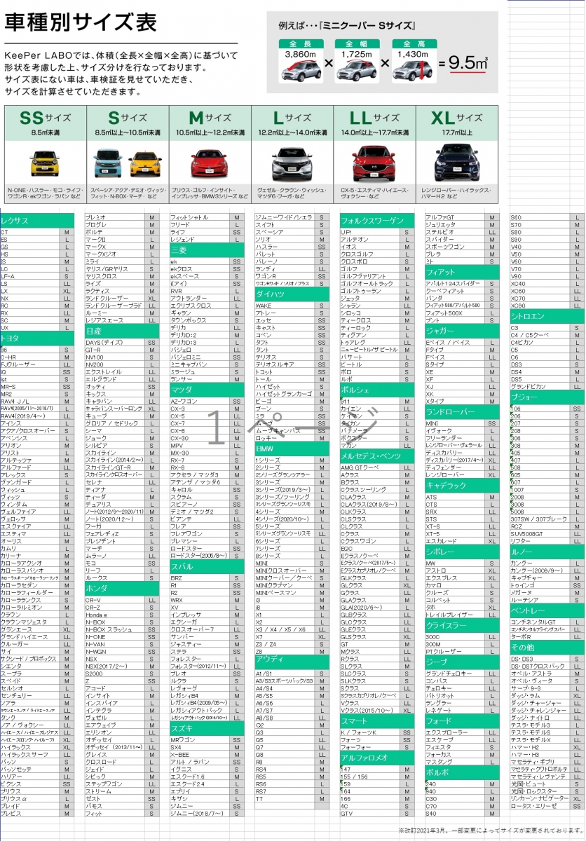 ※お客様のお車のサイズを調べるには下記のサイズイラストを