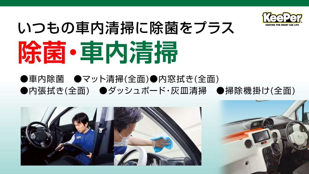 掃除機掛け(全面):マット清掃(全面):内窓拭き(全面):内張拭き(全面):ダッシュボード・灰皿清掃