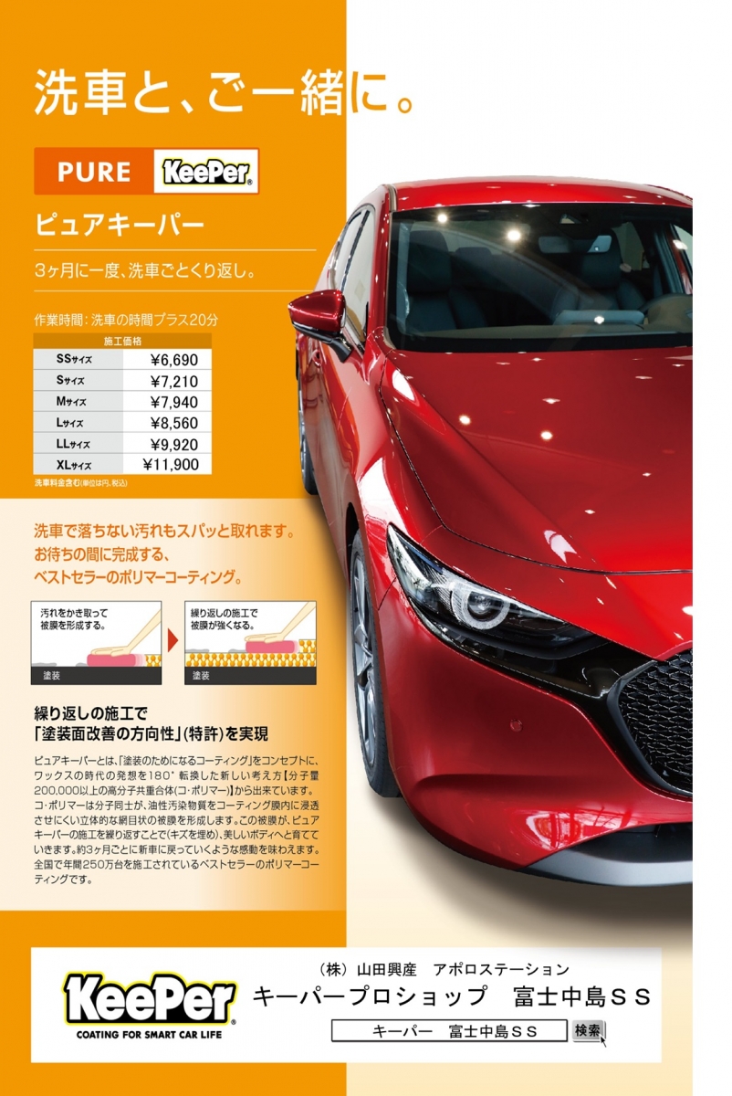 キーパーカーコーティングの予約・お問い合わせ! 電話0545-63-0862