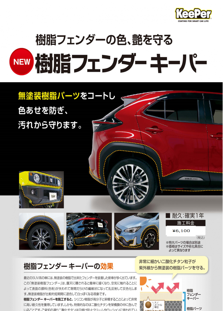 樹脂フェンダーキーパー(樹脂フェンダーの色、艶を守る)耐久:確実1年
