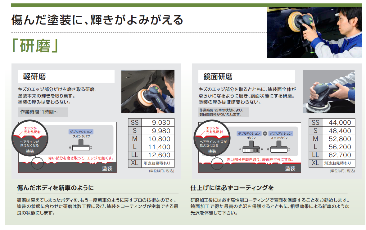 仕上がりの状態が分からないのに、研磨&コ-ティング作業を依頼するのは不安だと思います。
