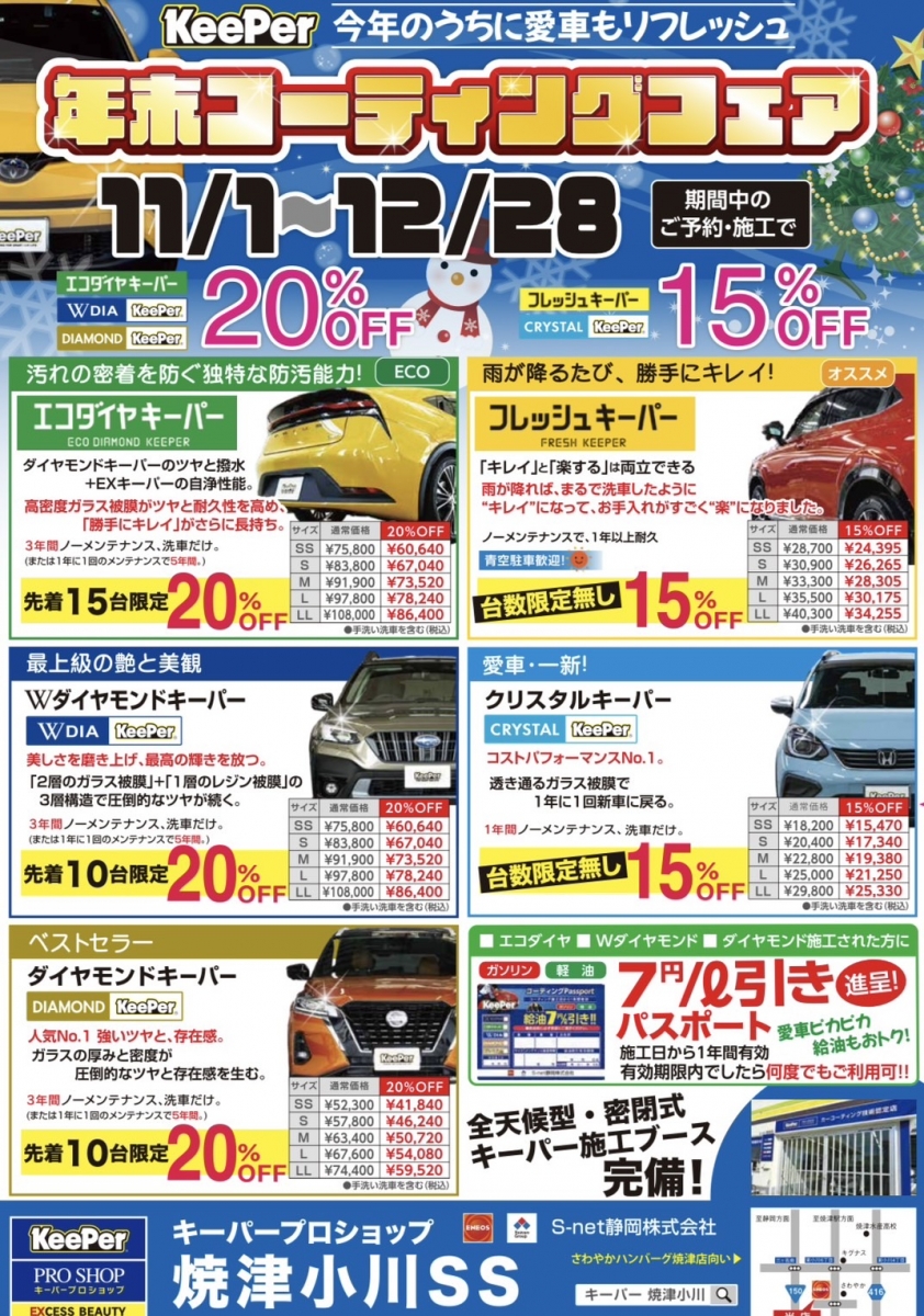 直前で予約が入らない・予約状況の確認・コーティング内容等でお困りのお客様は054-626-7999へお電話下さい。 ※キャンセル等で予約できる場合があります。ぜひお問い合わせください※