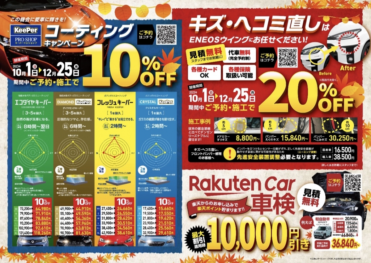 こんにちは!掛川TSの翔斗です🚗✨今日は秋晴れの気持ちいい一日でしたね☀️ガソリンスタンドで働いていると、季節の変わり目は車のメンテナンスやコーティングがとっても大切だな~と実感します!今日は下廻りコ...