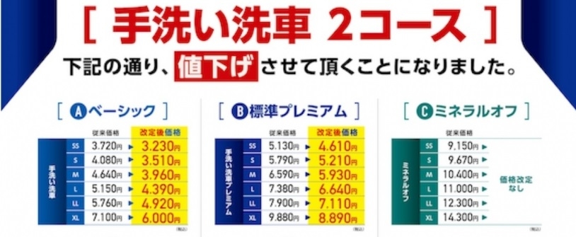 手洗い洗車値下げについて