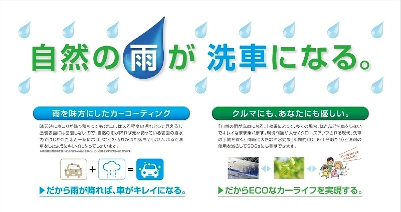 「ECOダイヤ」の「雨が降ればまるで洗車をしたようにキレイになって楽になる。」