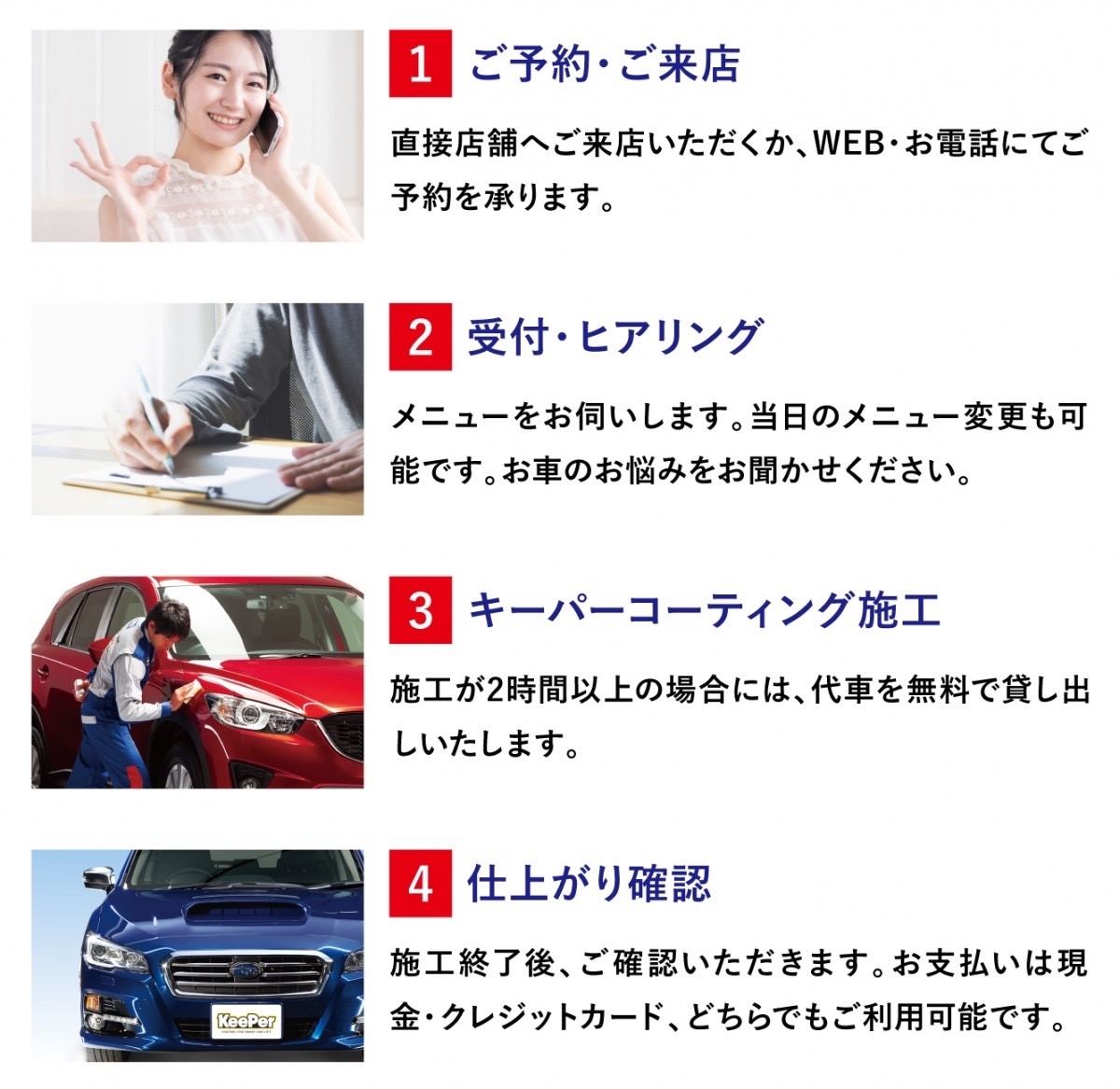 代車が無料で使えるので すき間時間に気軽にコーティングが出来ます!