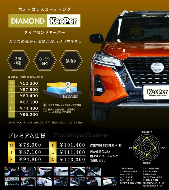 お車をきれいにする様々なコーティングメニューを取り揃えております!