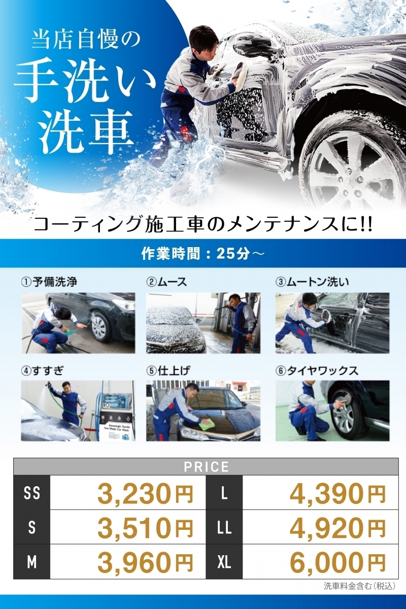 当店はコーティングだけでなく、手洗いや しつこい汚れの除去など大切なお車の