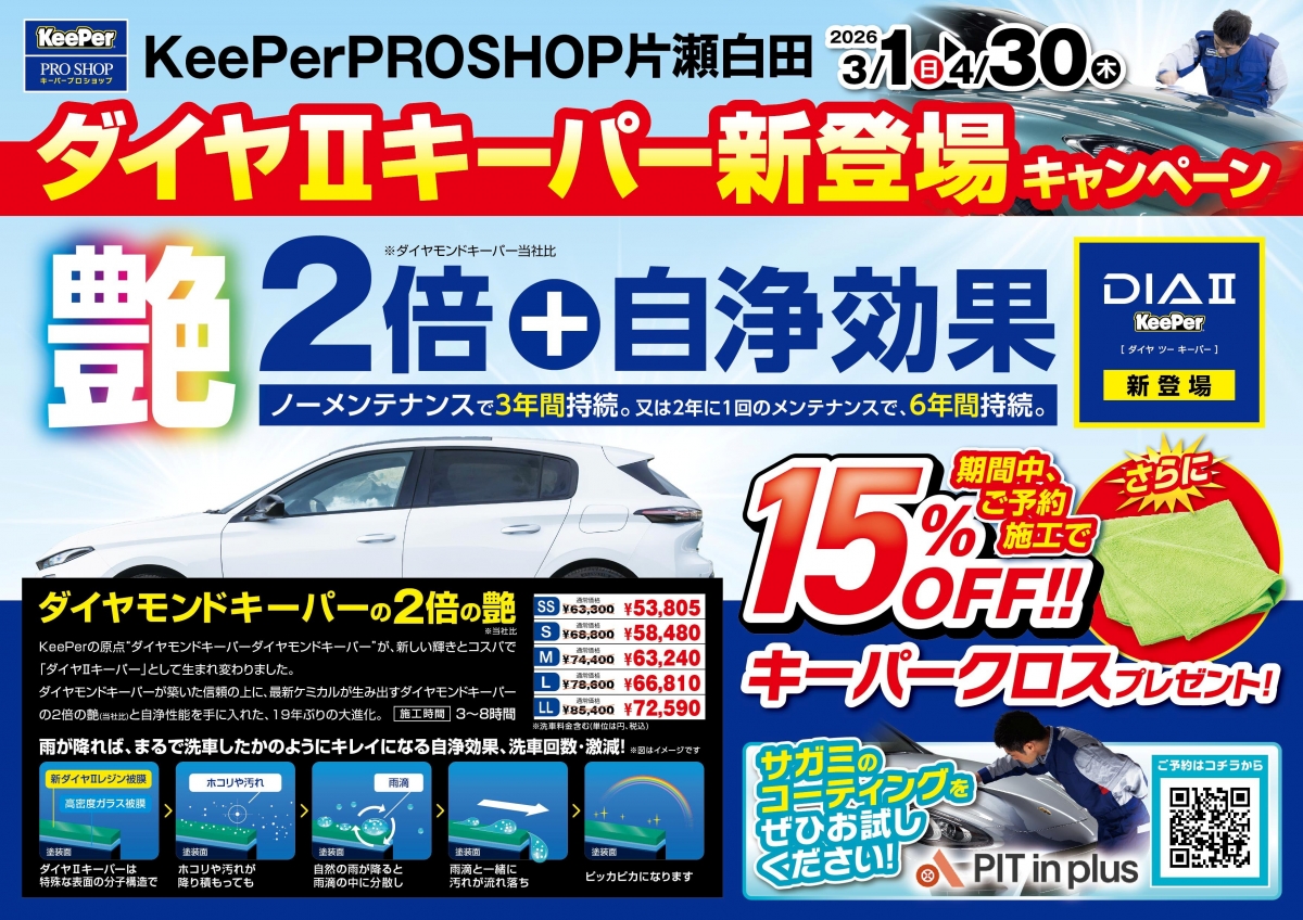 ダイヤモンドキーパーが新しい艶とコスパで「ダイヤⅡキーパー」として生まれ変わりました!! 3月1日~4月30日まで15%OFFにて施工を行っております。