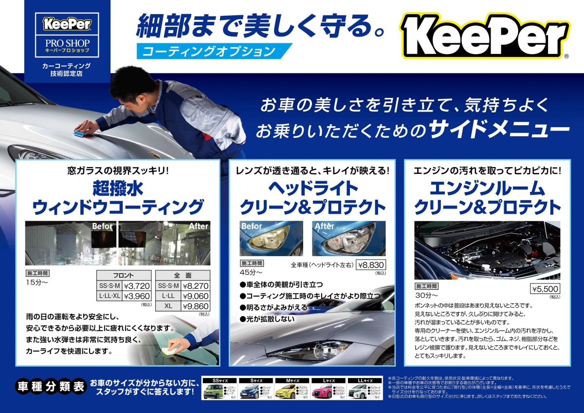 10月、11月は、気になるコーティングをお試しで部分施工実施中です♪ フレッシュキーパーやecoダイヤモンドキーパーも好評をえており体感できます!! 気になる方はお気軽にスタッフまでお声かけください♪