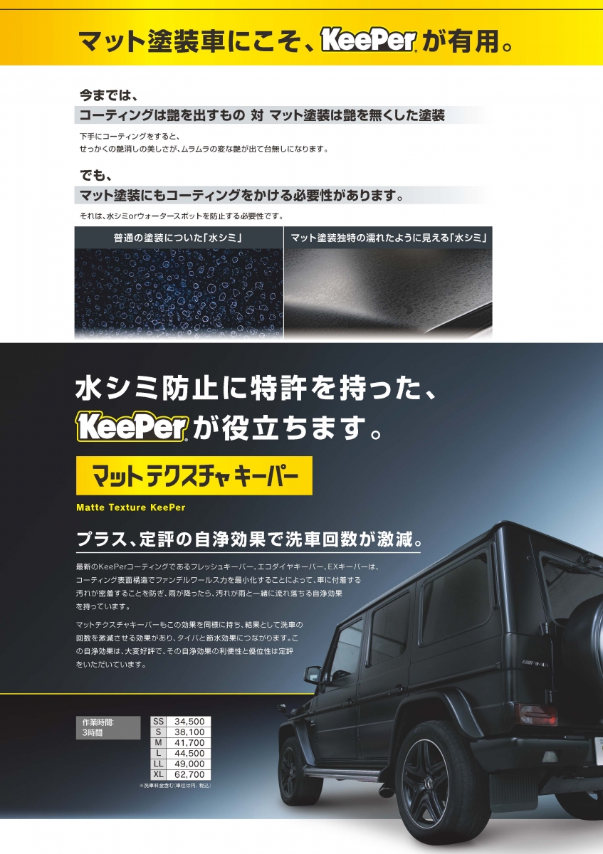 待望のマットカラー(艶消し)車両向け Keeper コーティング登場!