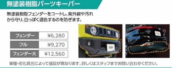 最近のお車に増えてきた樹脂パーツ(黒色の部分)時間が経つとともに白くなってしまいますよね(´;ω;`)