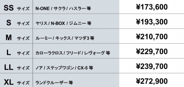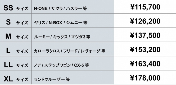 ↑画像タップでお客様のお車のサイズ検索ができます