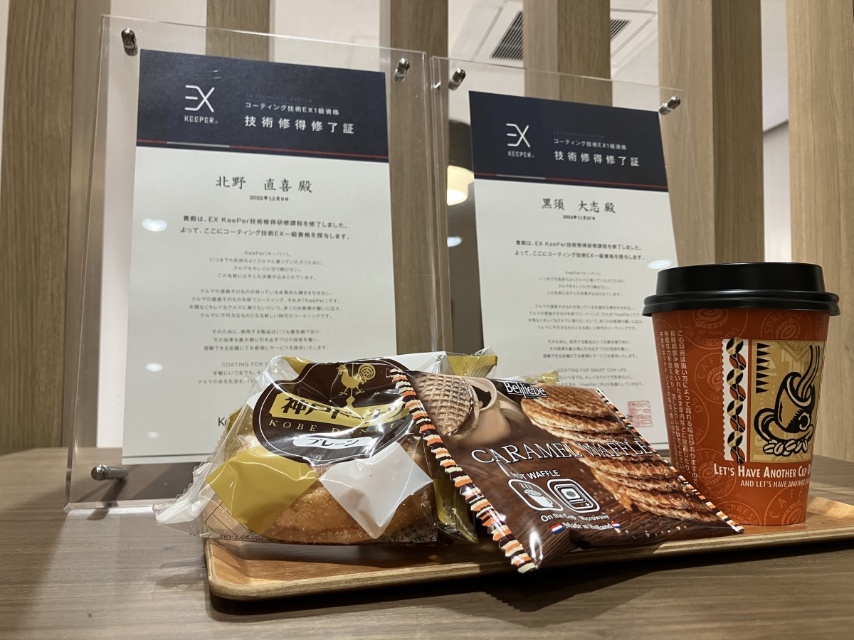 当店のコーティング施工スタッフは、キーパートレーニングセンターで、 最新の技術と知識を身につけたコーティング技術認定資格を所有しているスタッフが多数在籍しております。