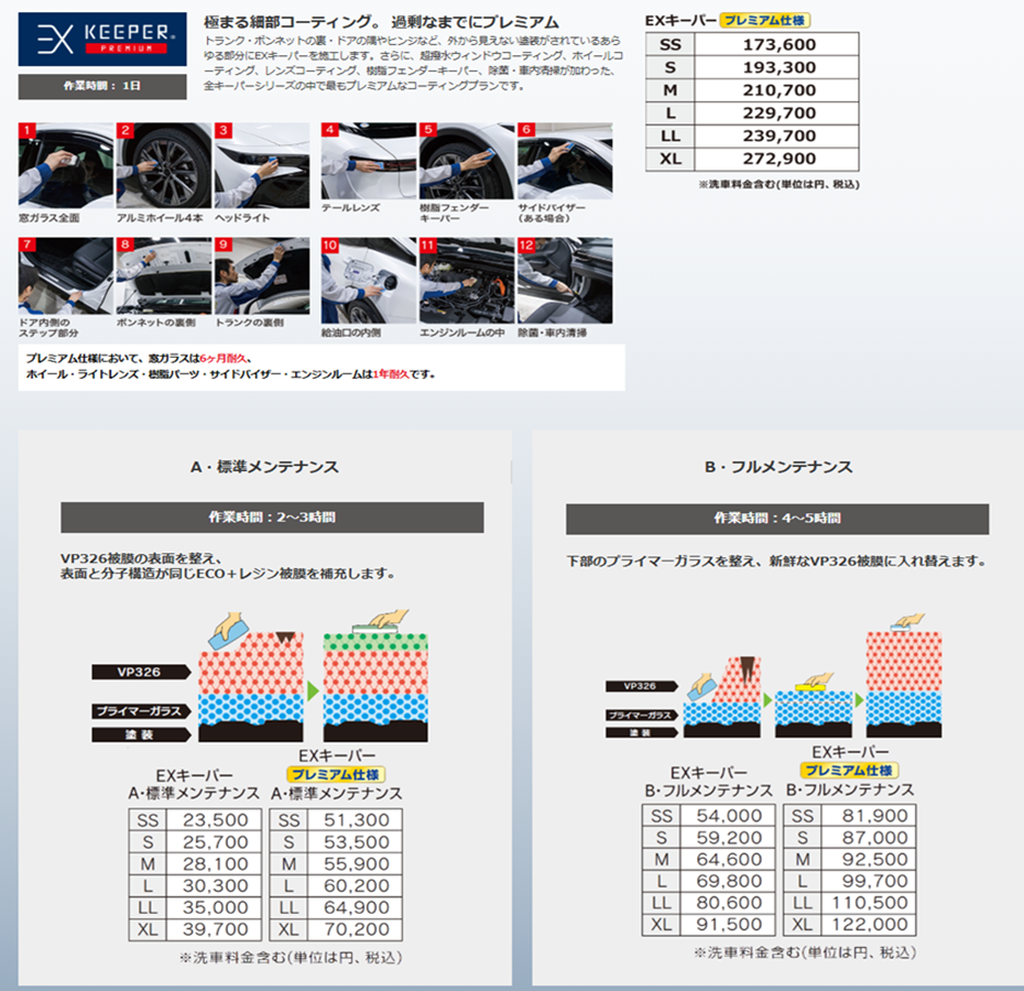 新開発のVP326という被膜によりお車のボディーを守ってくれます! 今までにないコーティングです! 最上級のKeeperコーティングになります!