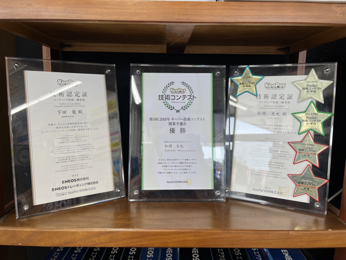 キーパー選手権で優秀な成績を収めた技術力の高いスタッフが在中し、地域の皆様にご満足いただけるように、スタッフ一同日々技術力を磨いておりますので、是非当店にて1度キーパーコーティングをお試しください!