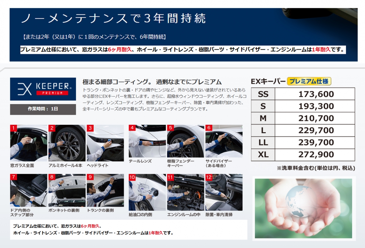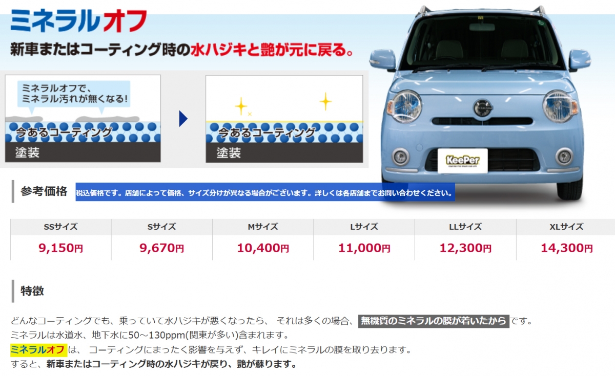 キーパーコーティングメニュー