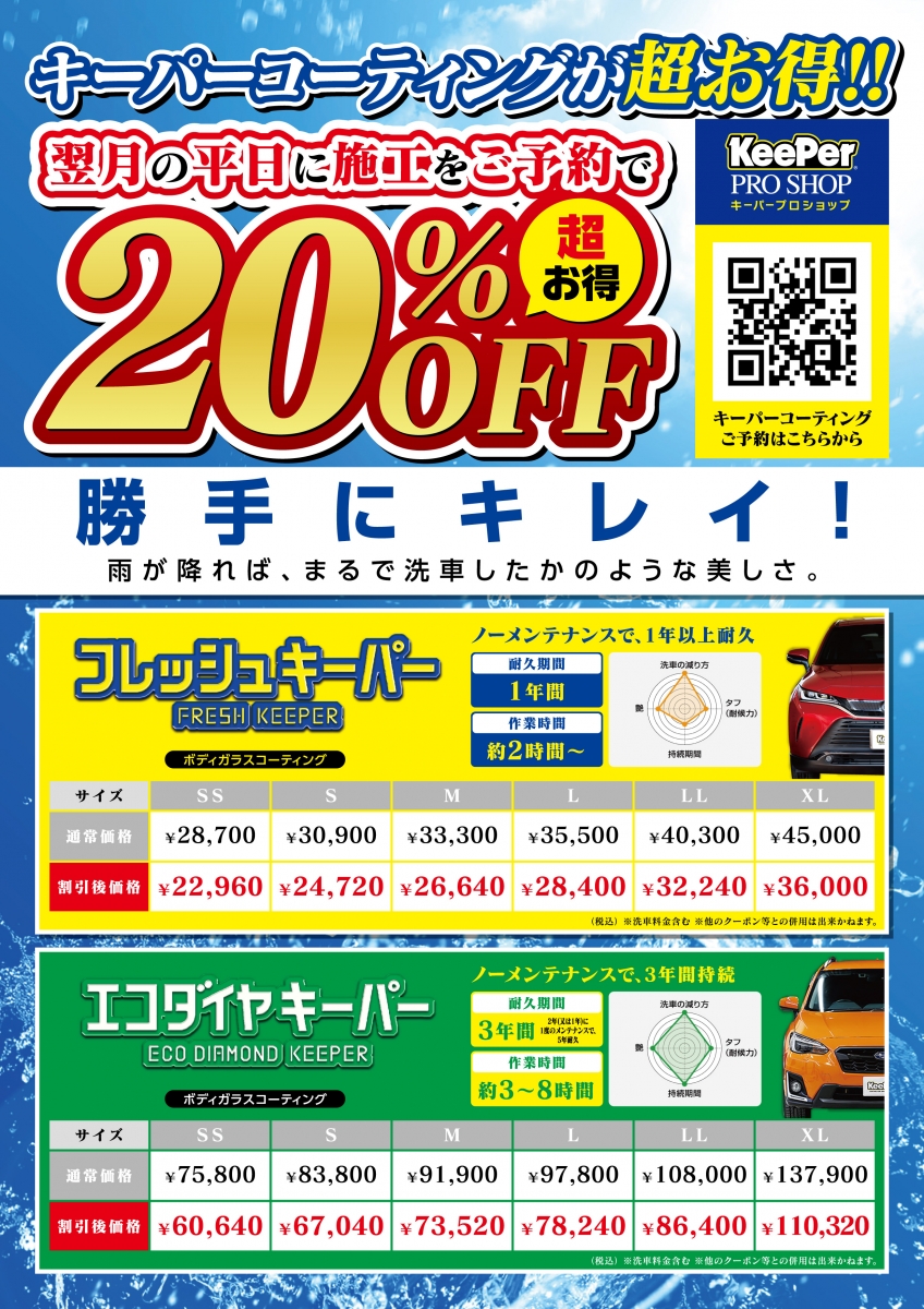キーパーコーティングをしておけば、