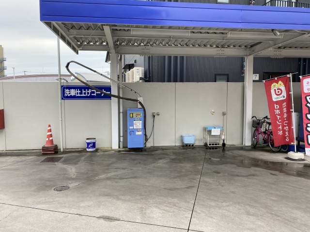 ちょっと狭いですが、仕上げコーナーございます。タオル・タイヤワックスご用意してますのでお使いください。