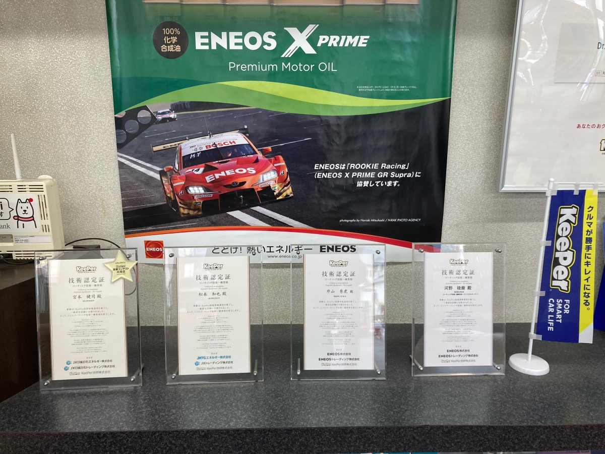 大道のガソリンスタンドENEOSと併設のキーパープロショップです!