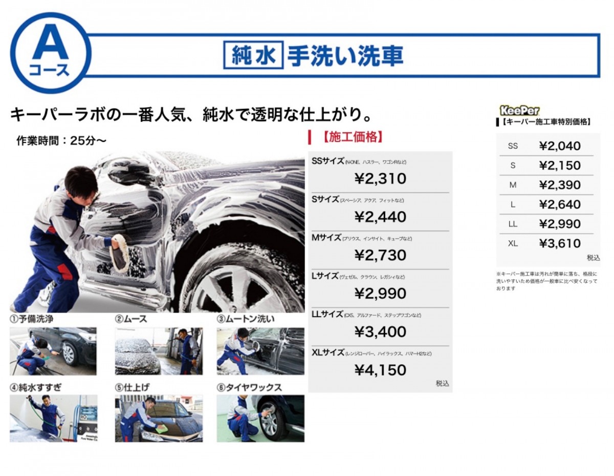KeePerコーティングはもちろん、自慢の純水泡ムートン手洗い洗車、その他豊富なメニューなどなど!!