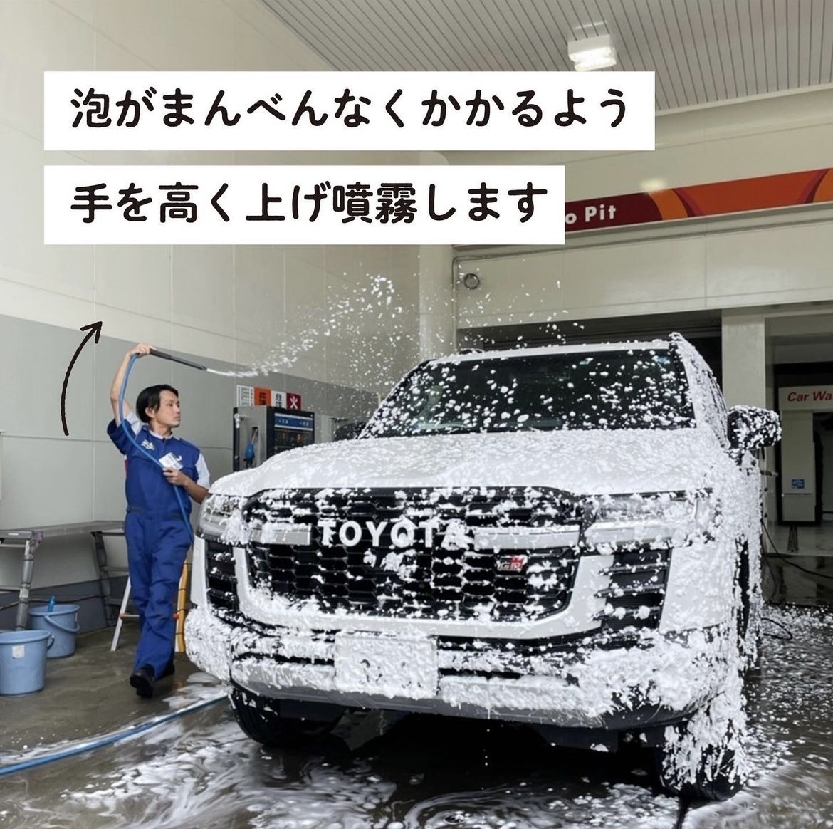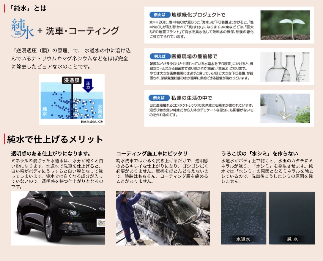 手洗い洗車は不純物を取り除いたこだわりの純水を使用しています