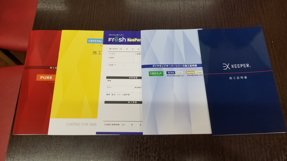 各種コーティングの施工時には、施工証明書の発行をさせていただいております!!