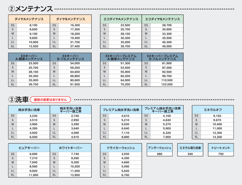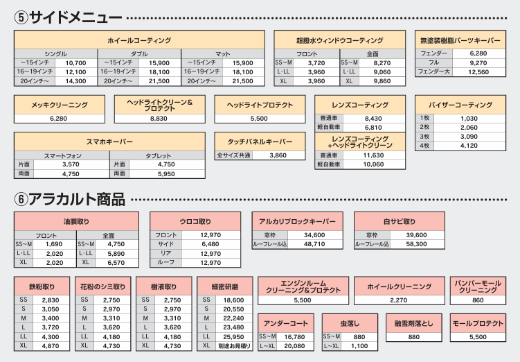 洗車・ケアメニュー