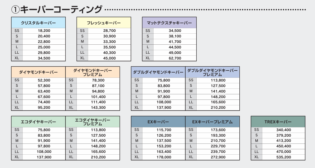 クリスタルキーパー・フレッシュキーパー・ダイヤモンドキーパー・ダブルダイヤモンドキーパー・ECOプラスダイヤモンドキーパー・EXキーパーには鉄粉除去・室内清掃・ホイール洗浄も無料で行わせていただいてます。(プレミアムメニューも含みます)