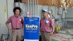 ピュアキーパー施工中です。手で掛けるポリマーコーティングで、3ヶ月ごと繰り返し施工されますと、よりお車がキレイになります。
