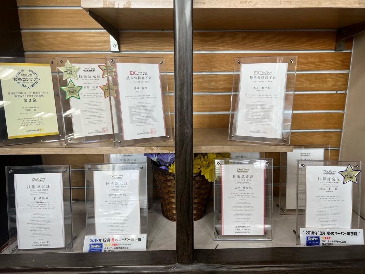 - 当店はコーティング1級資格者が5名在籍しており、技術に絶対の自信をもっております。