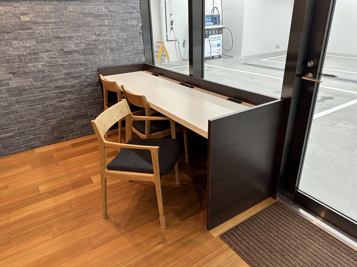 施工ブース内では2台施工可能! お客様の待合室も充実しております!
