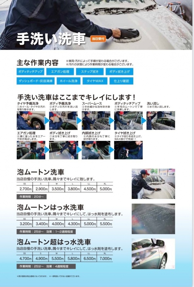 また、作業洗車およびその他対応は9:00-18:00となっております。