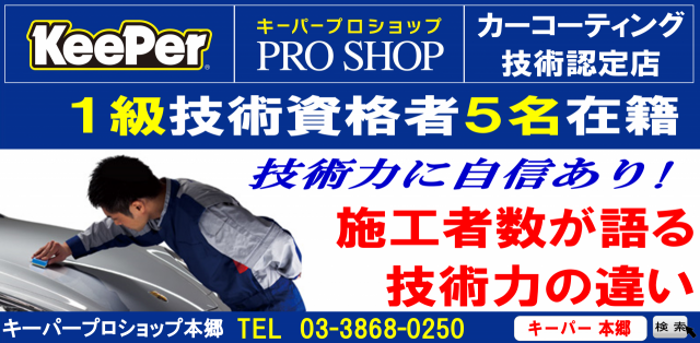 最高品質のコーティングを施工するために、当店では1級技術資格者が1台1台責任をもってコーティングを施工します。