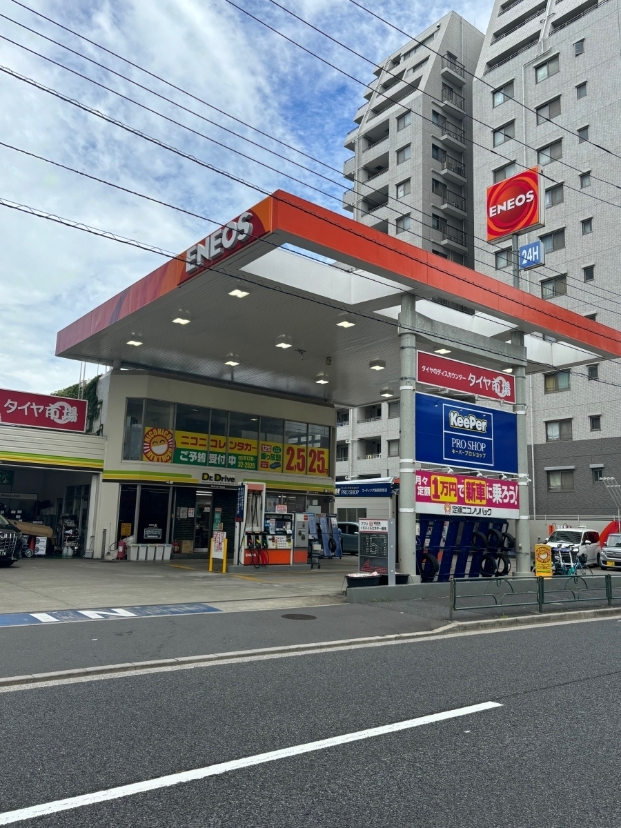 新大橋通り沿い、西大島駅のすぐ近くのガソリンスタンドです。
