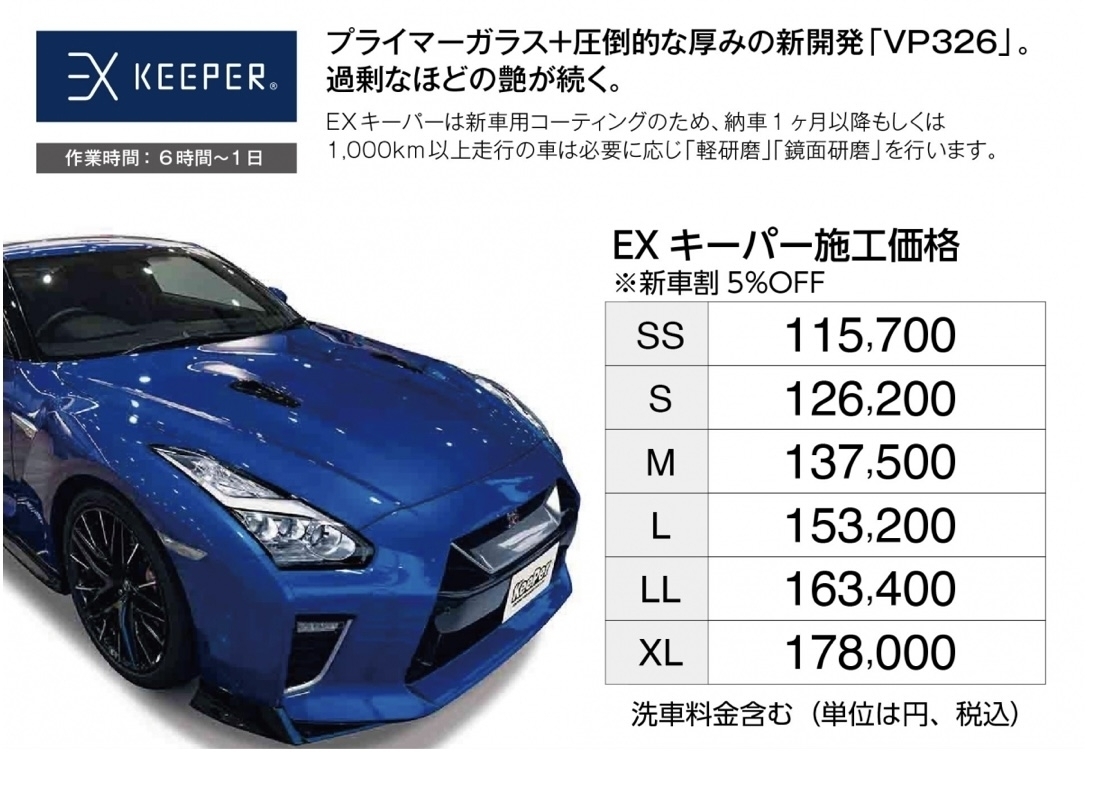 新車用EXKeeper(イーエックスキーパー)は完全予約制となります。
