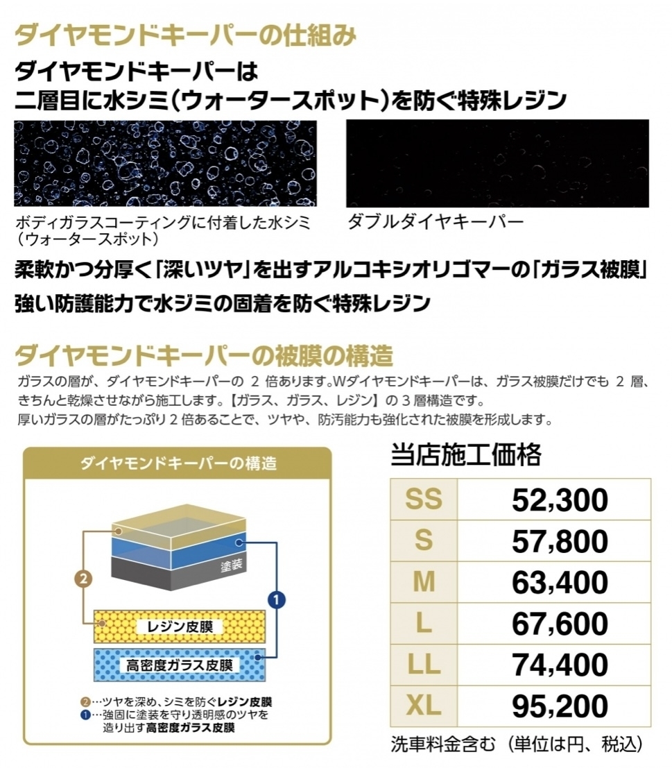 キーパーコーティング、アラカルト一覧表はこちらをクリック!↓