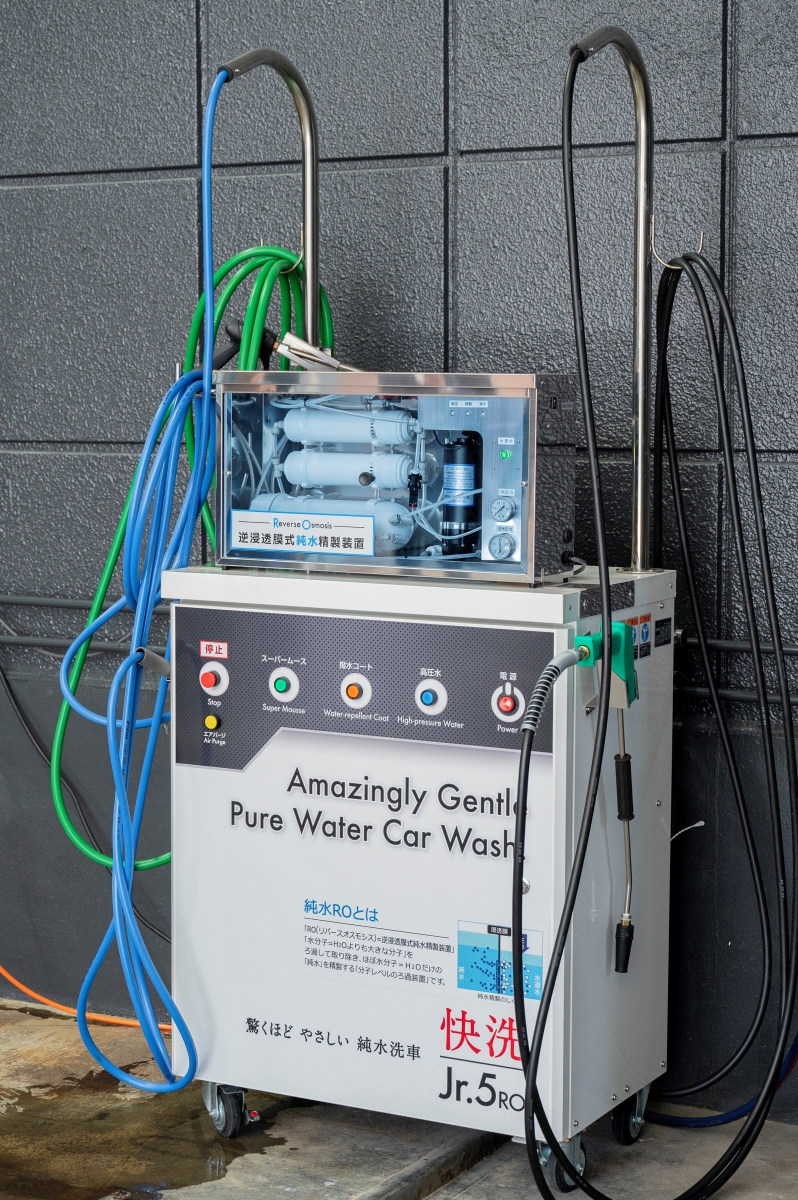 密閉された全天候型コーティング専用ブースが完備されており、手洗い洗車とカーコーティングには全台「純水」を使用しています。