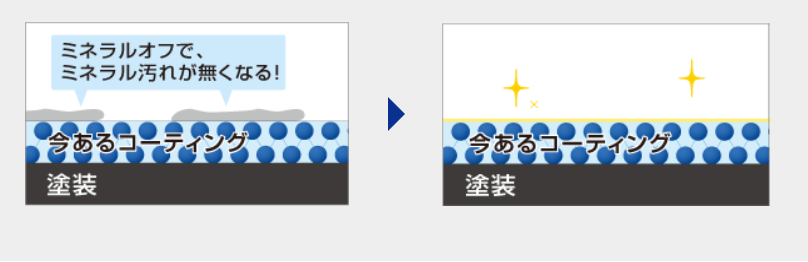 汚れの密着を防ぎ雨と一緒に汚れが流れ落ちます。洗車の回数がぐんと減ります!